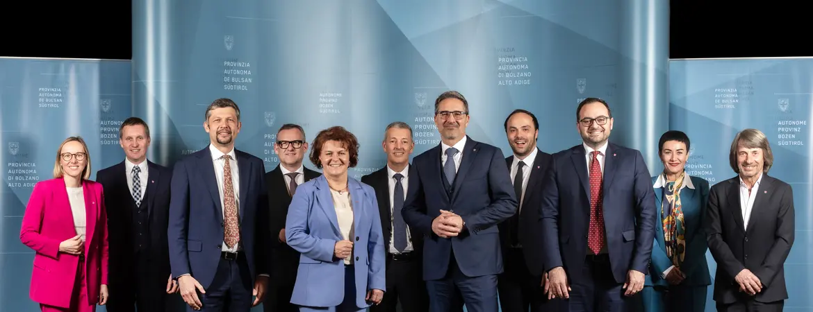 In der laufenden, XVII. Legislaturperiode setzt sich die Landesregierung aus 11 Mitgliedern zusammen. Neben dem Landeshauptmann Arno Kompatscher sind dies Rosmarie Pamer, Marco Galateo, Daniel Alfreider, Philipp Achammer, Magdalena Amhof, Christian Bianchi, Peter Brunner, Ulli Mair, Hubert Messner und Luis Walcher. (Foto: LPA/ Ivo Corrà)