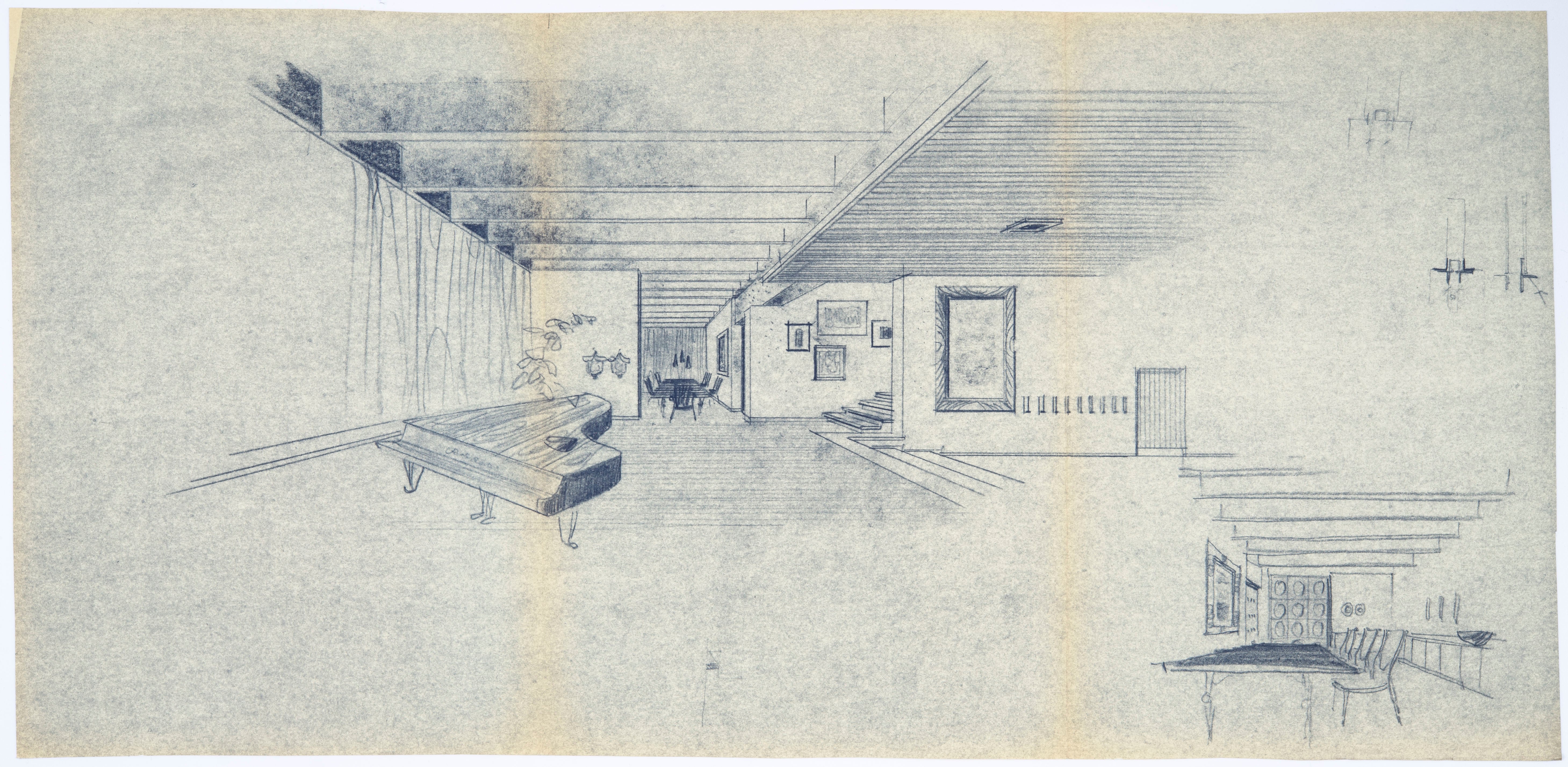 - Originalskizze des Inneren der Villa Durst aus dem Nachlass des Architekten Othmar Barth, der im Landesarchiv aufbewahrt wird. » [IMG 2 MB]
